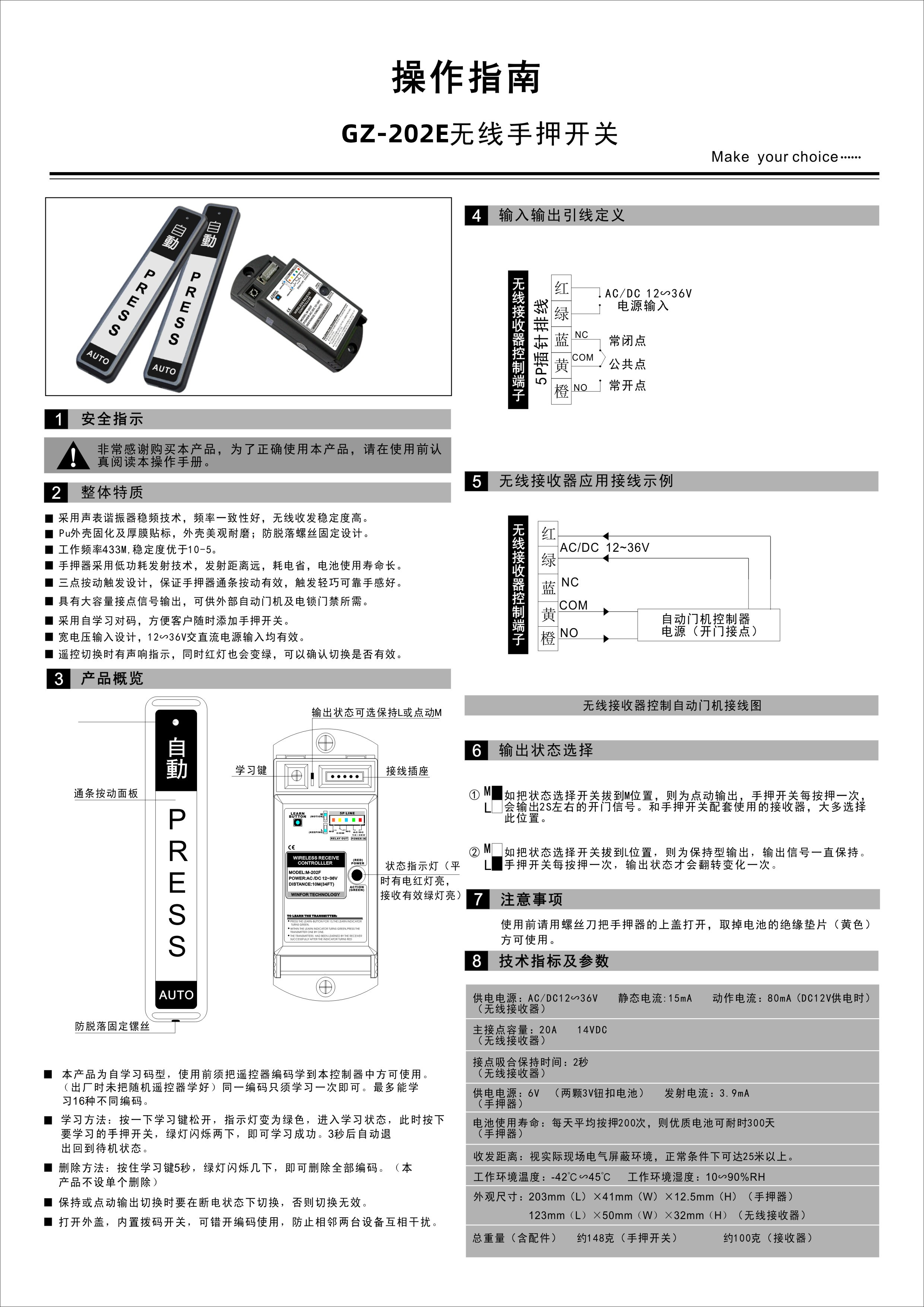 202E自动感应门无线手押开关