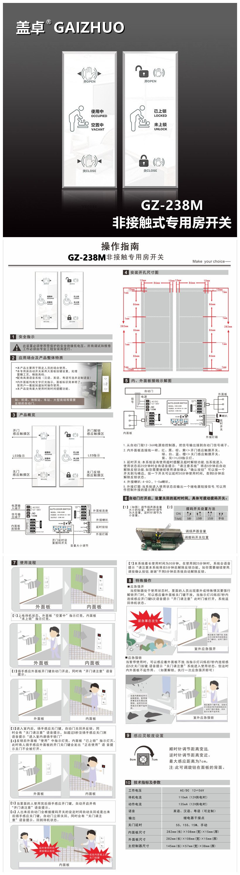 GZ-238M非接触式专用房开关