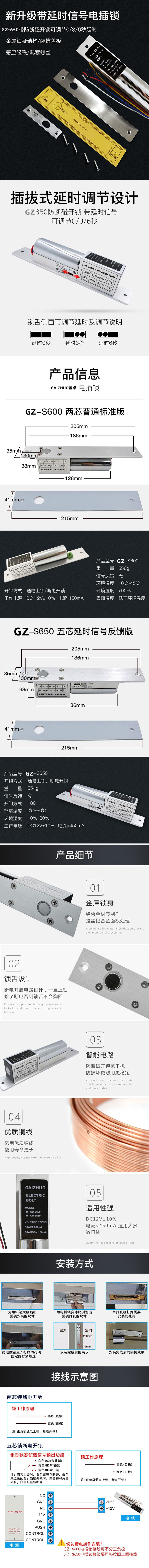 门禁电插锁暗装嵌入式12V明装锁